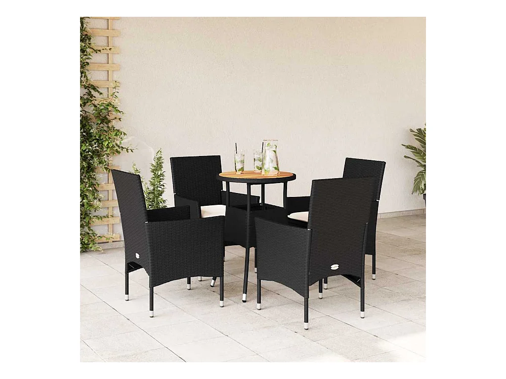 5 peças conjunto jantar jardim com almofadões vime PE/acácia preto