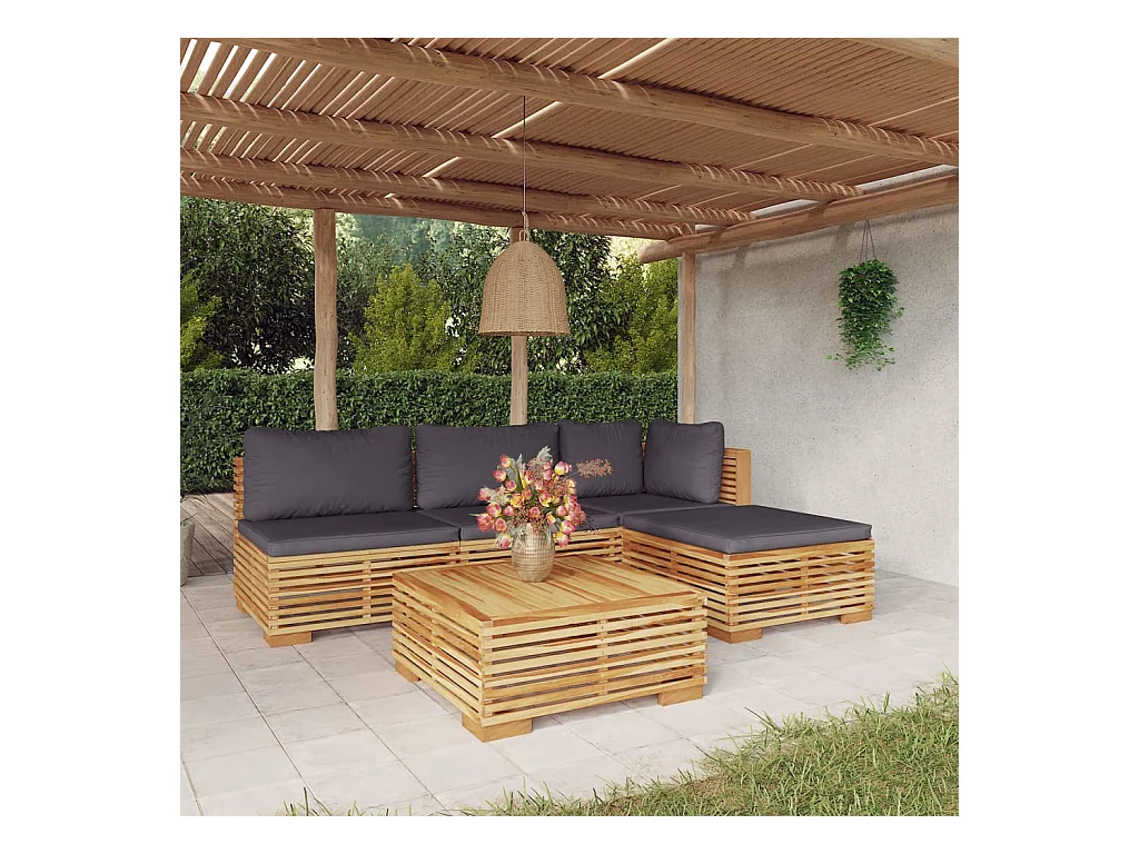 5 peças conjunto lounge jardim c/ almofadões madeira teca maciça