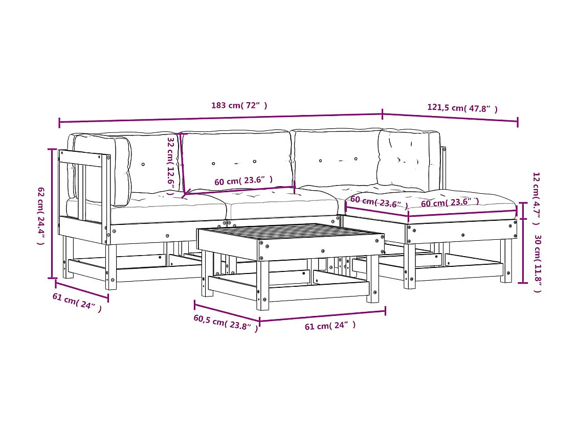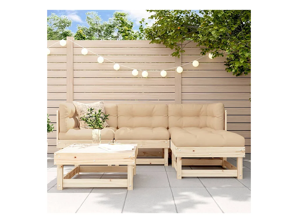 5 peças conjunto lounge jardim com almofadões madeira maciça