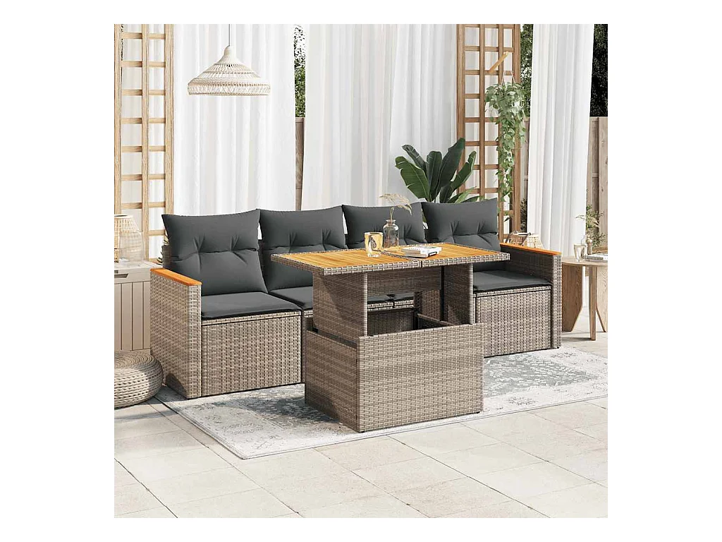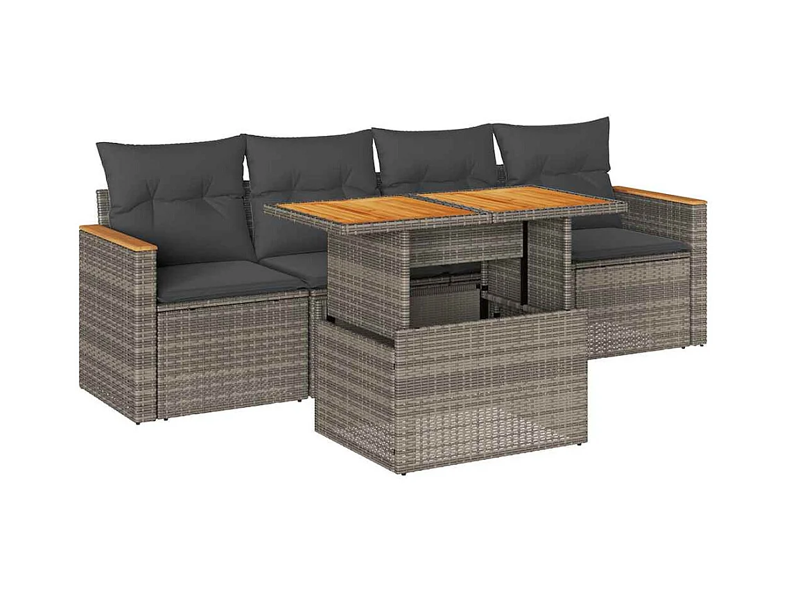 5 peças conjunto sofás de jardim com almofadões acácia e vime PE
