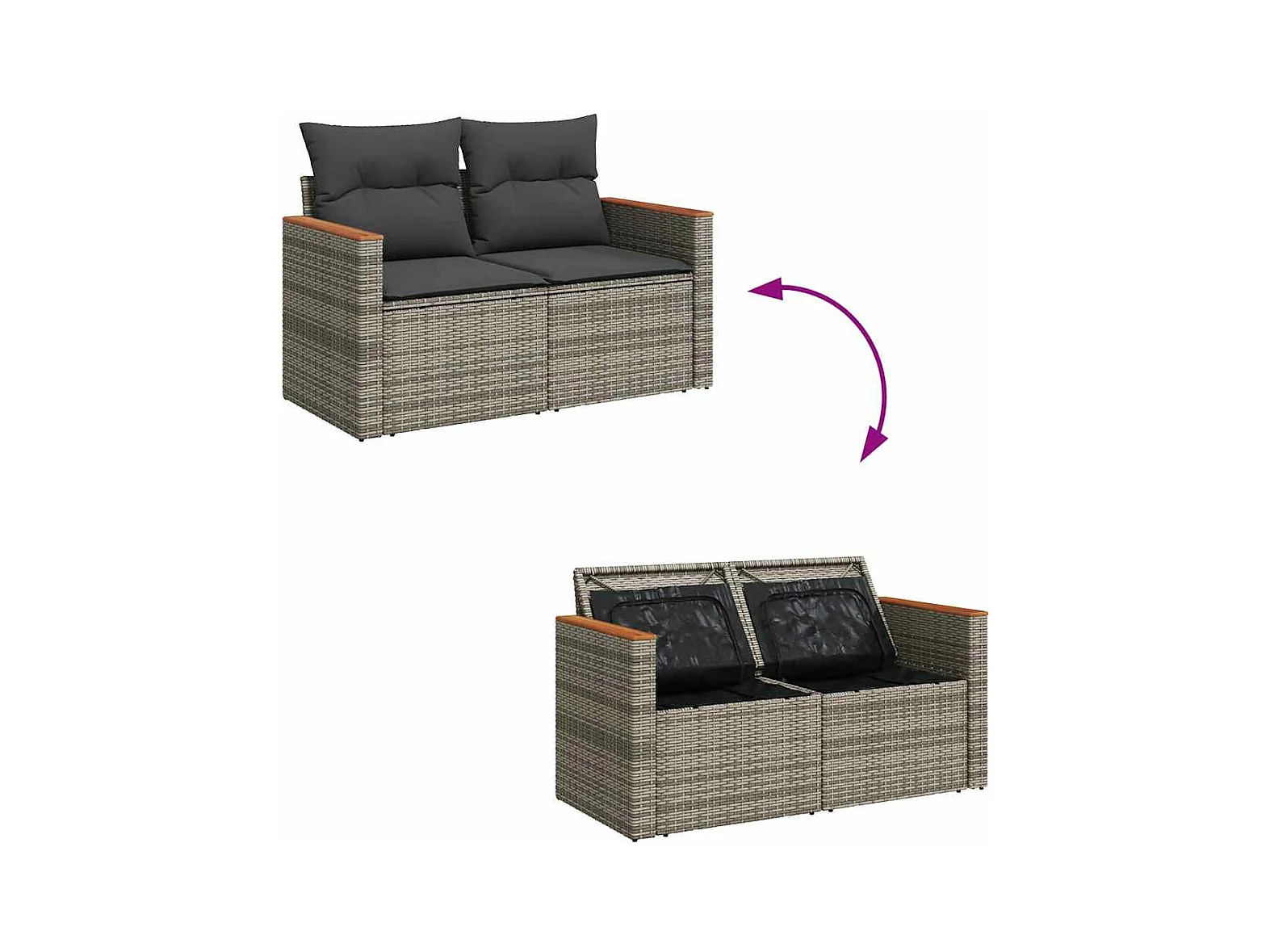 6 peças conjunto sofás jardim com almofadões PE/acácia cinzento