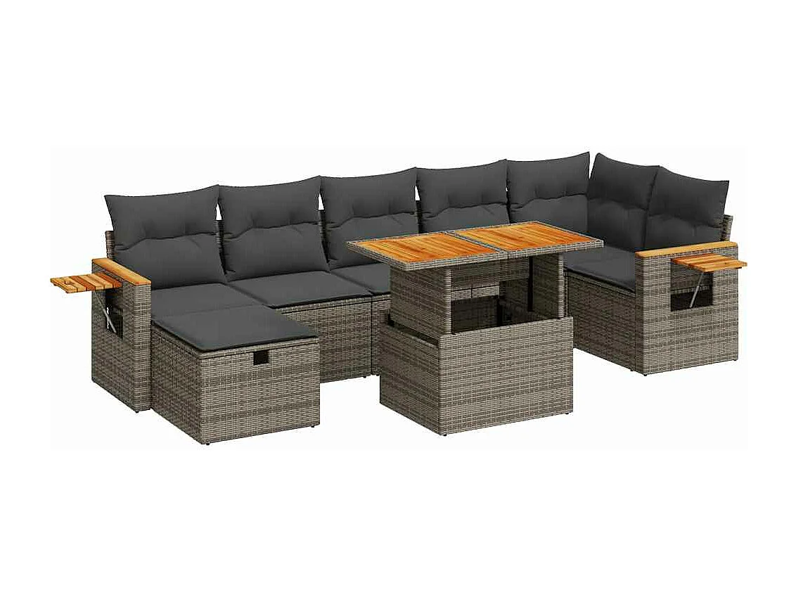 5 peças conjunto sofás de jardim com almofadões vime PE cinzento