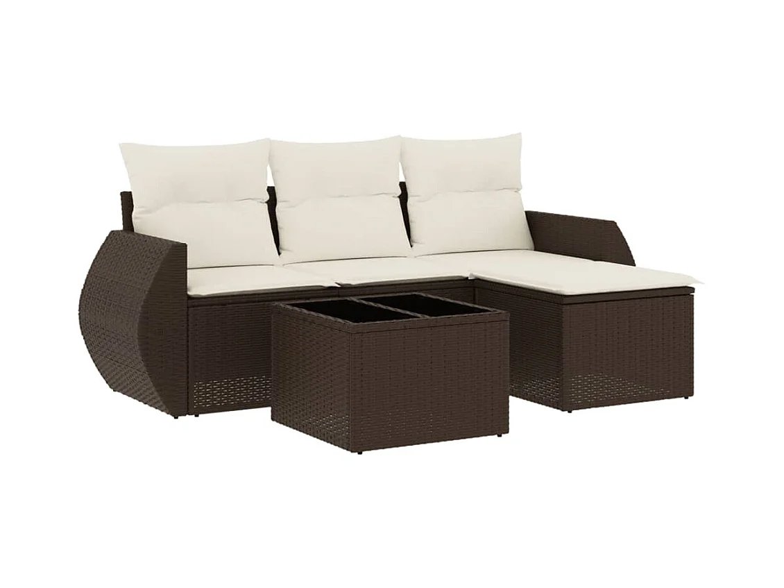 5 peças conjunto sofás para jardim com almofadões vime PE castanho