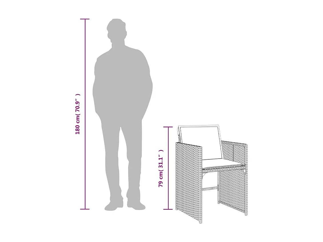 5pcs conj. jantar jardim c/ almofadões vime PE bege misturado