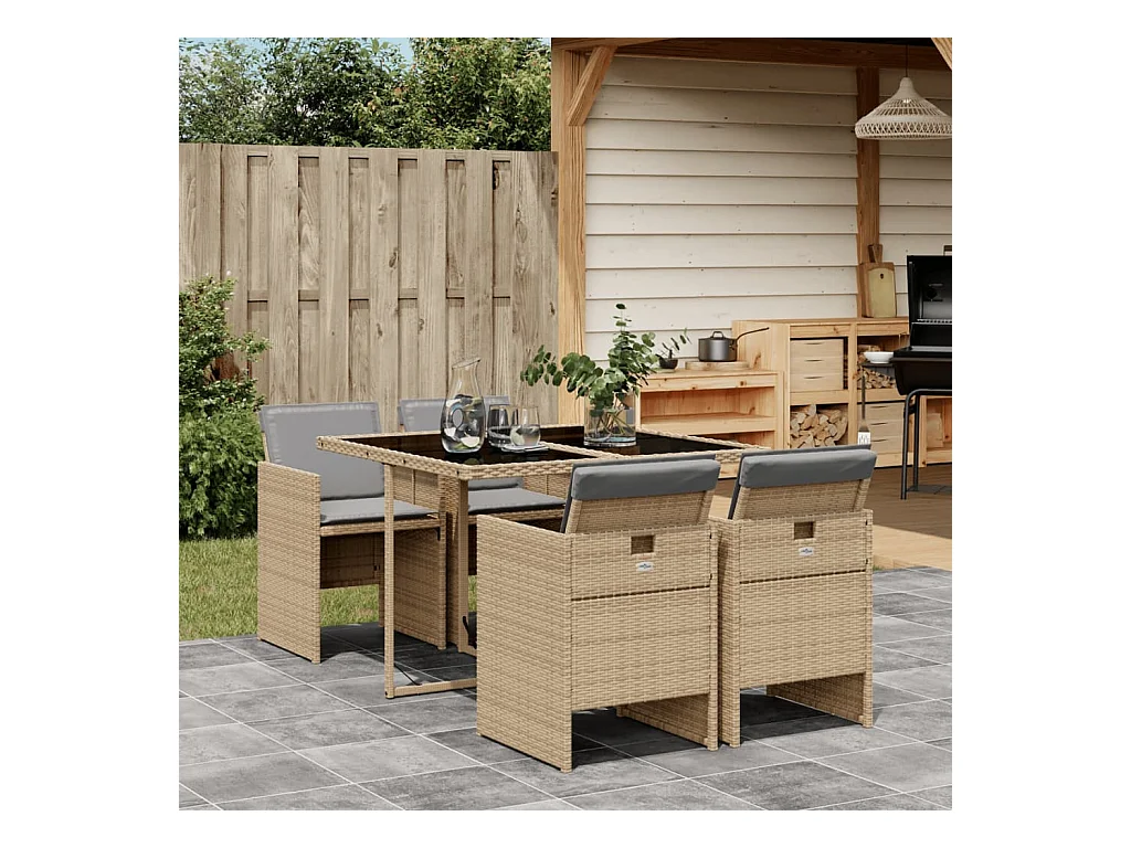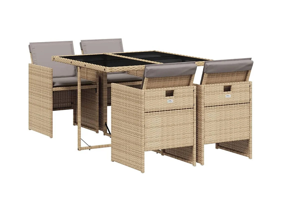 5pcs conj. jantar jardim c/ almofadões vime PE bege misturado PT910517