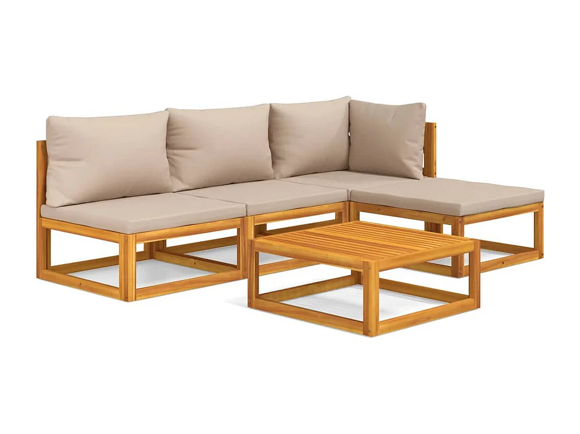 5pcs conj. lounge jardim madeira c/almofadões cinza-acastanhado