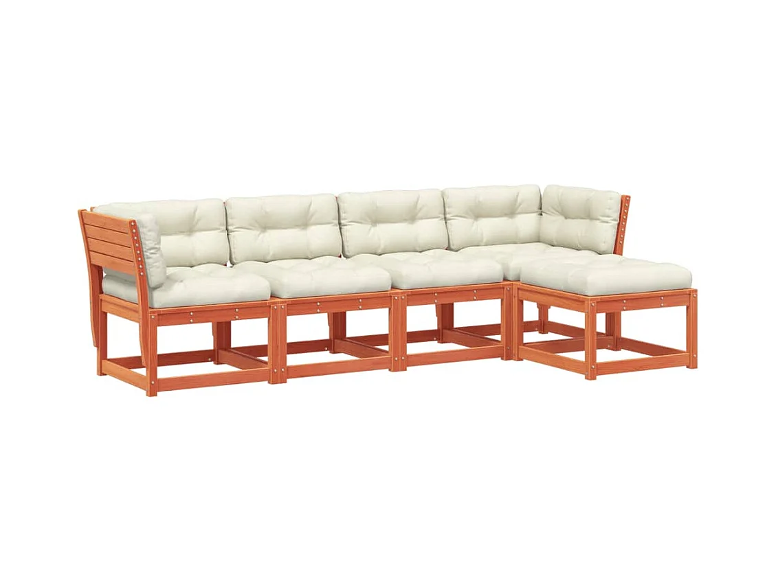 5pcs conj. sofás jardim + almofadões pinho maciço castanho-mel