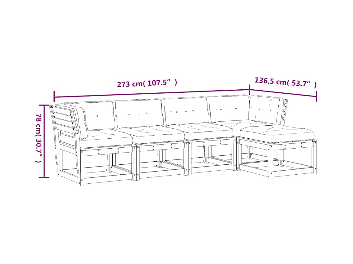 5 pcs conjunto de sofás de jardim com almofadões pinho maciço