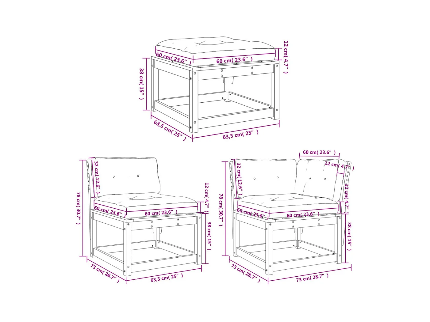 6 pcs conjunto de sofás de jardim c/ almofadões pinho maciço
