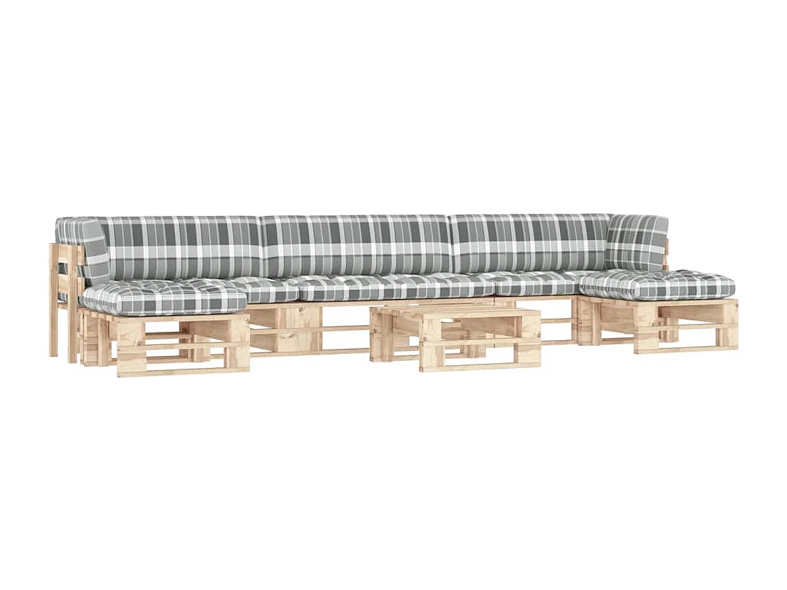 6 pcs conj. lounge paletes c/ almofadões pinho impregnado