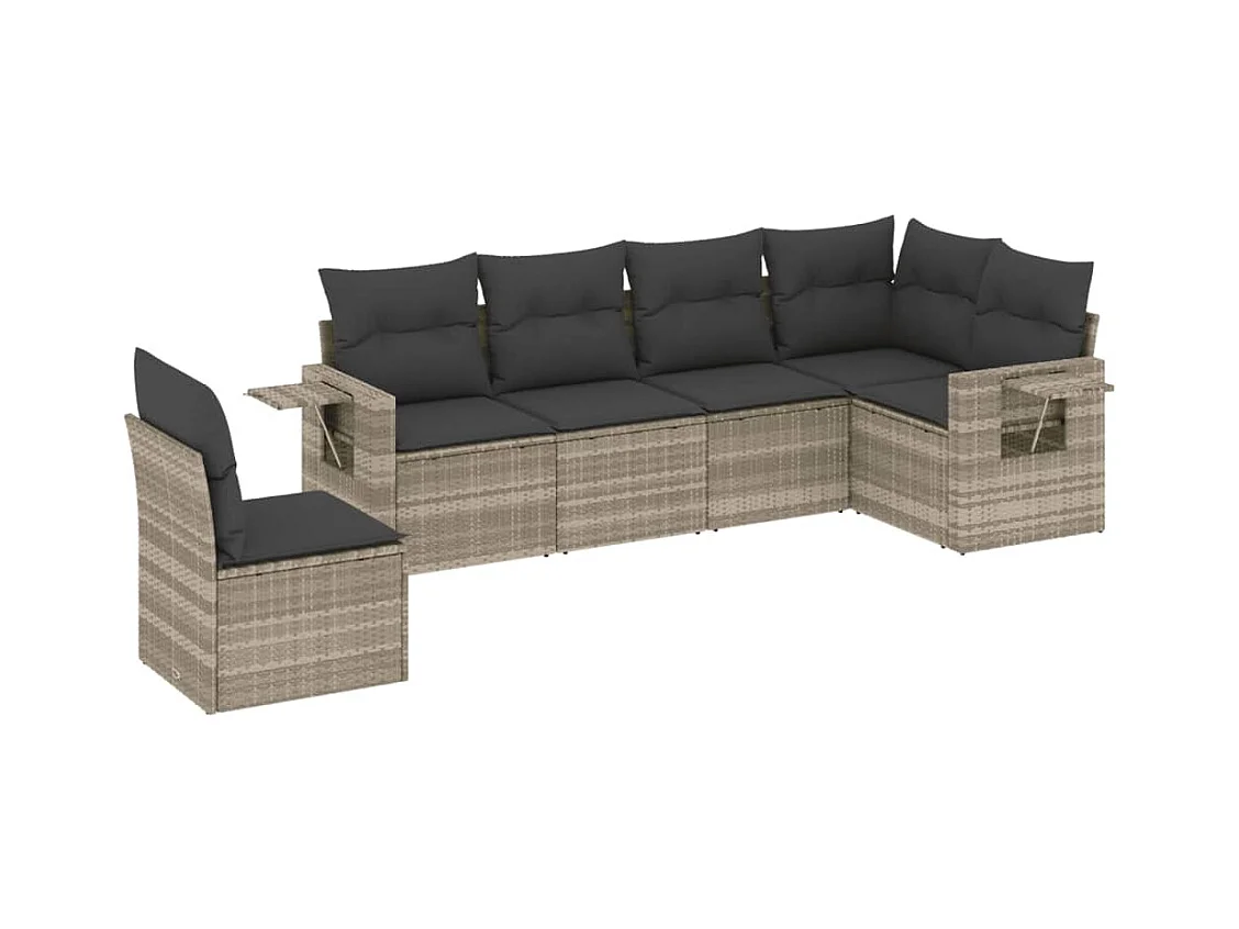 6 pcs conj. sofás jardim com almofadões vime PE cinzento-claro