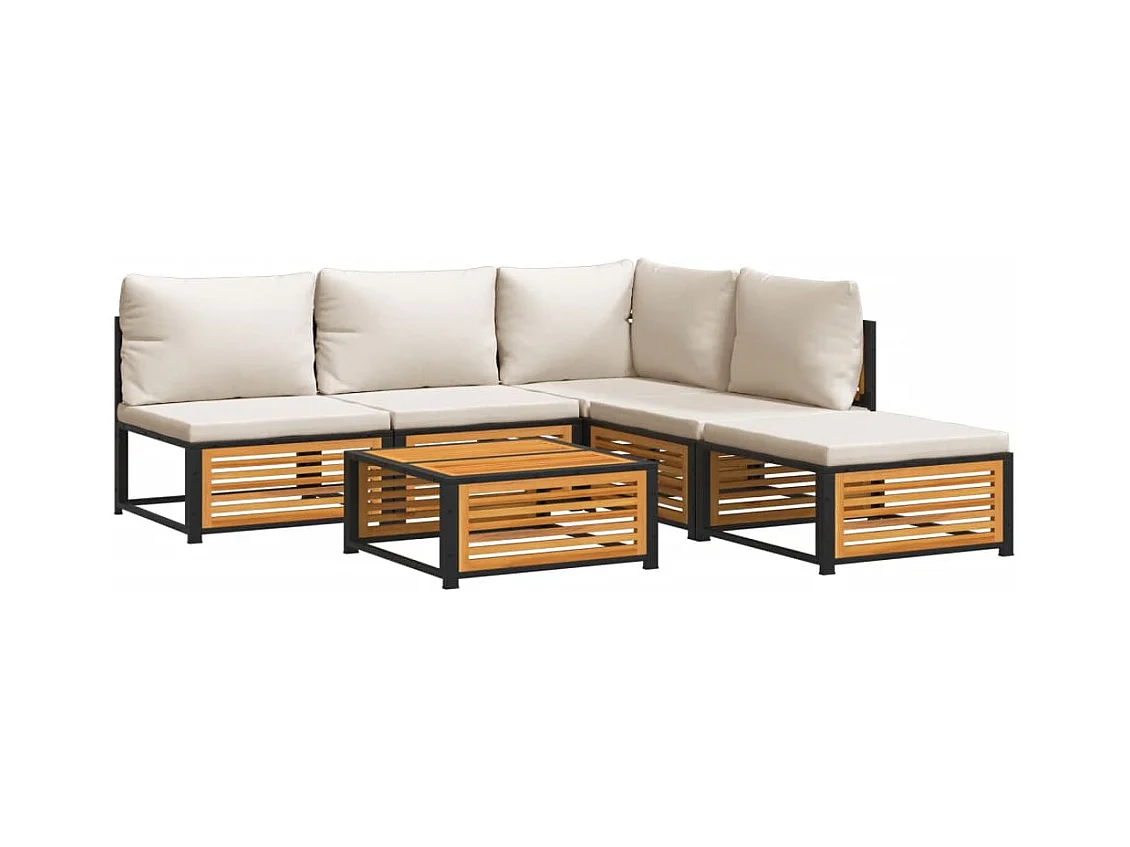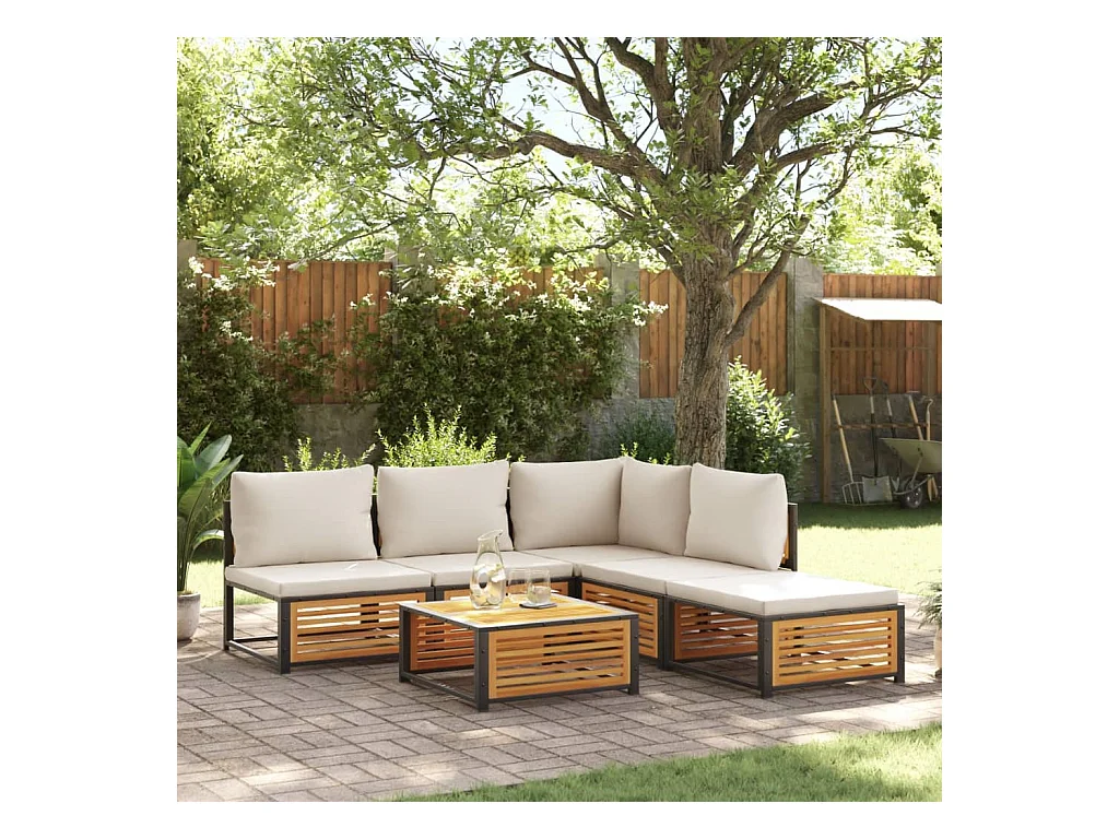 6 pcs conjunto de sofás de jardim com almofadões acácia maciça