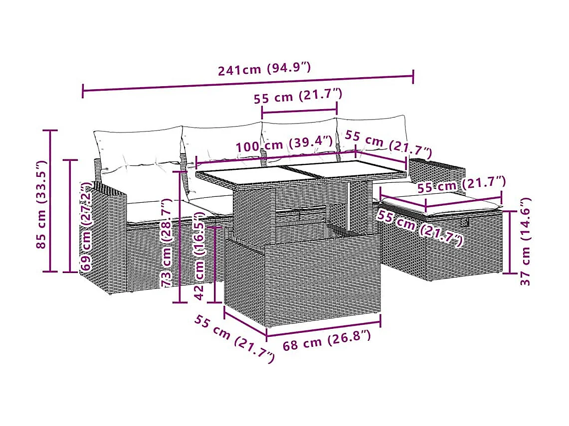 Sala de jardim completa - 2+1+1 lugares