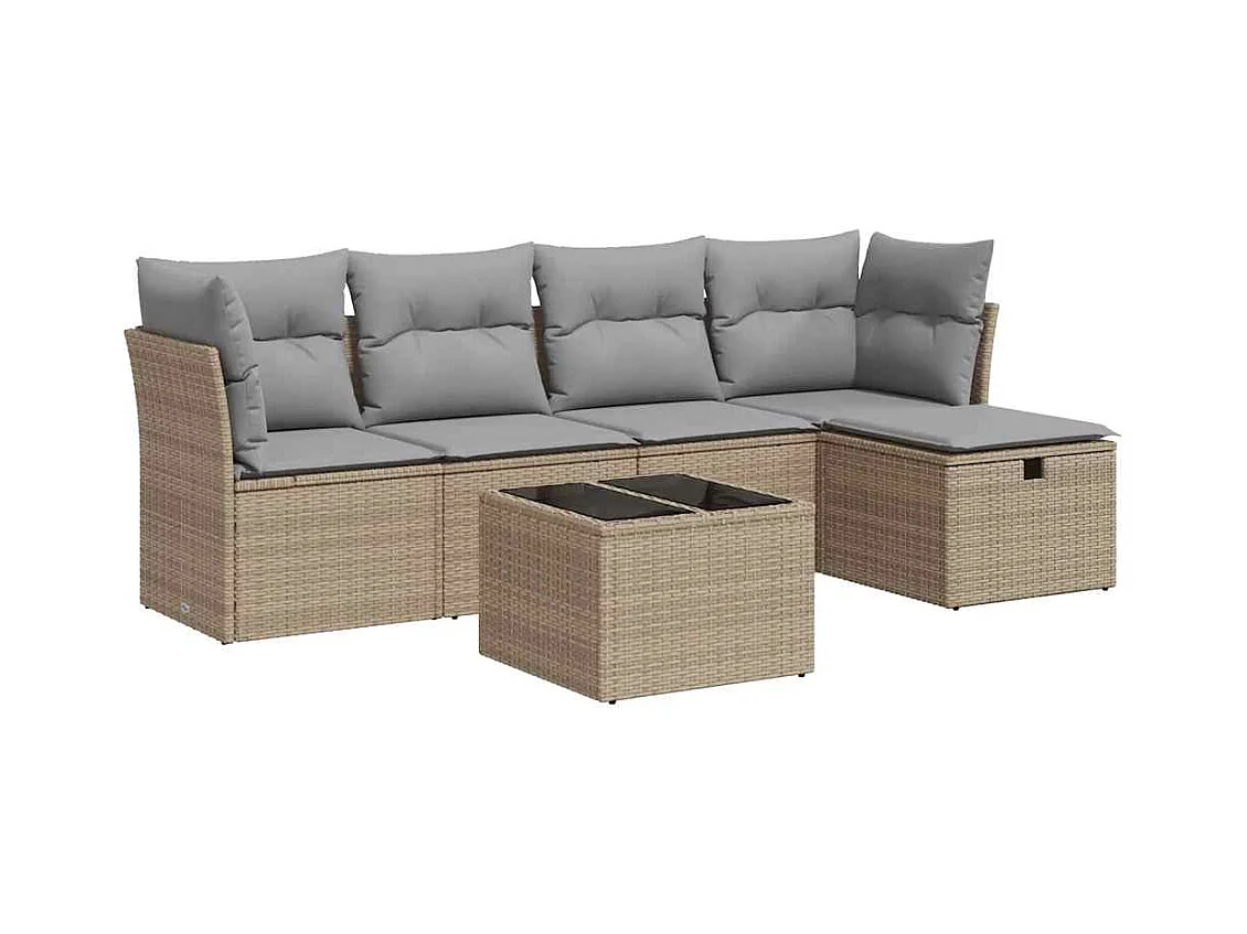 6 pcs conjunto de sofás p/ jardim com almofadões vime PE bege