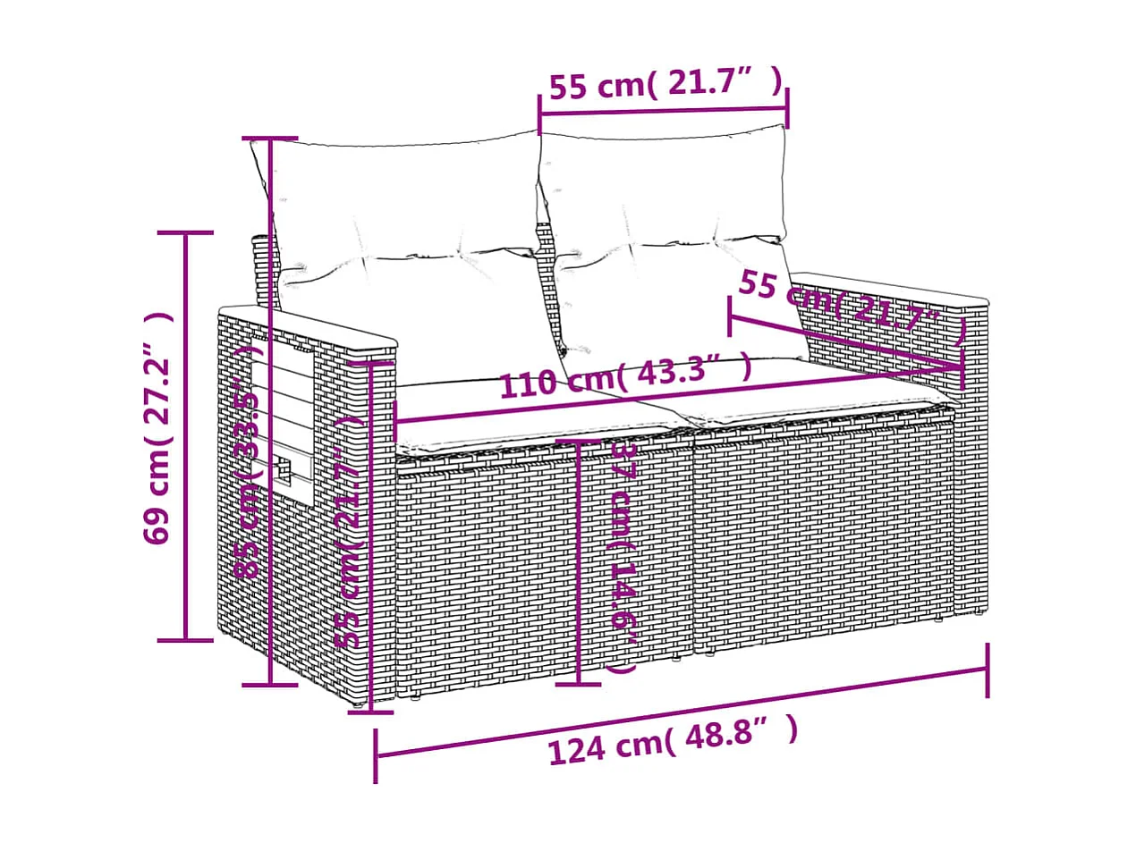 6 pcs conjunto de sofás p/ jardim com almofadões vime PE bege