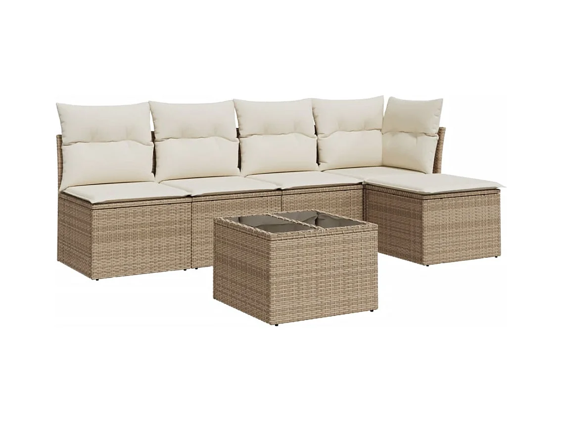 6 pcs conjunto de sofás p/ jardim com almofadões vime PE bege PT354994