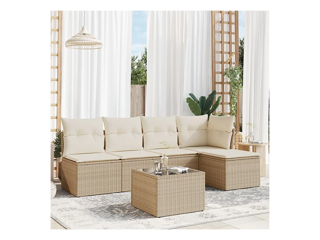 6 pcs conjunto de sofás p/ jardim com almofadões vime PE bege PT291703
