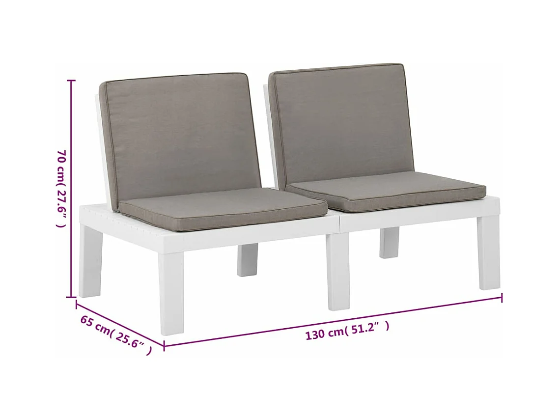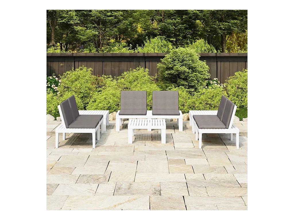 6 pcs conjunto lounge de jardim c/ almofadões plástico branco
