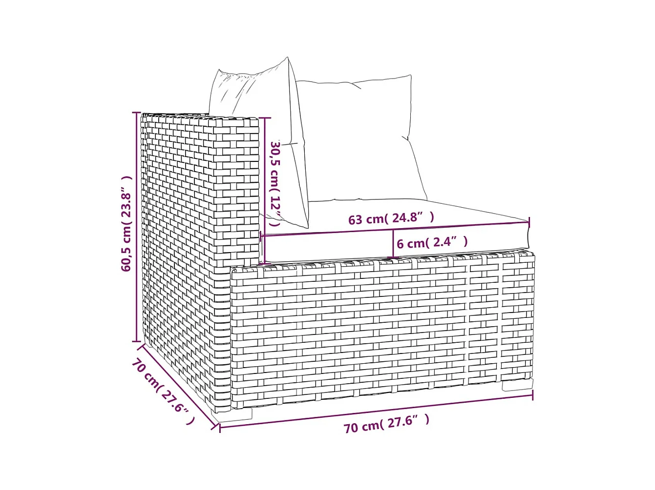 6 pcs conjunto lounge de jardim c/ almofadões vime PE cinzento