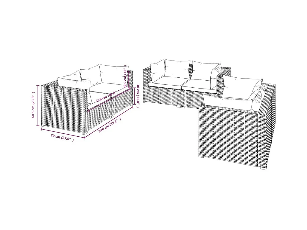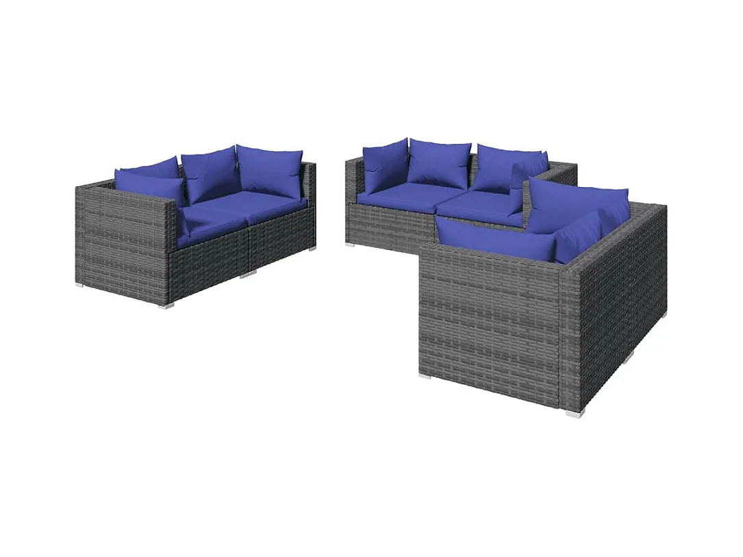 6 pcs conjunto lounge de jardim c/ almofadões vime PE cinzento PT12007