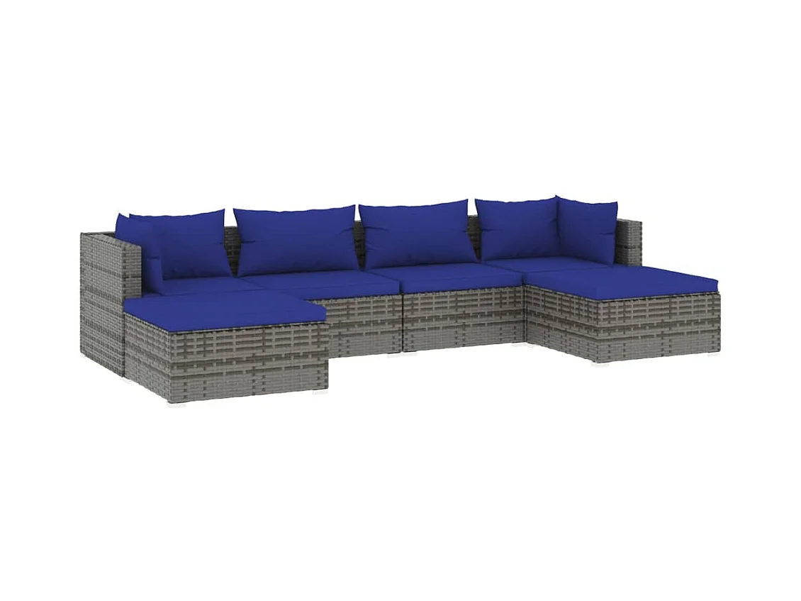 6 pcs conjunto lounge de jardim c/ almofadões vime PE cinzento PT12007