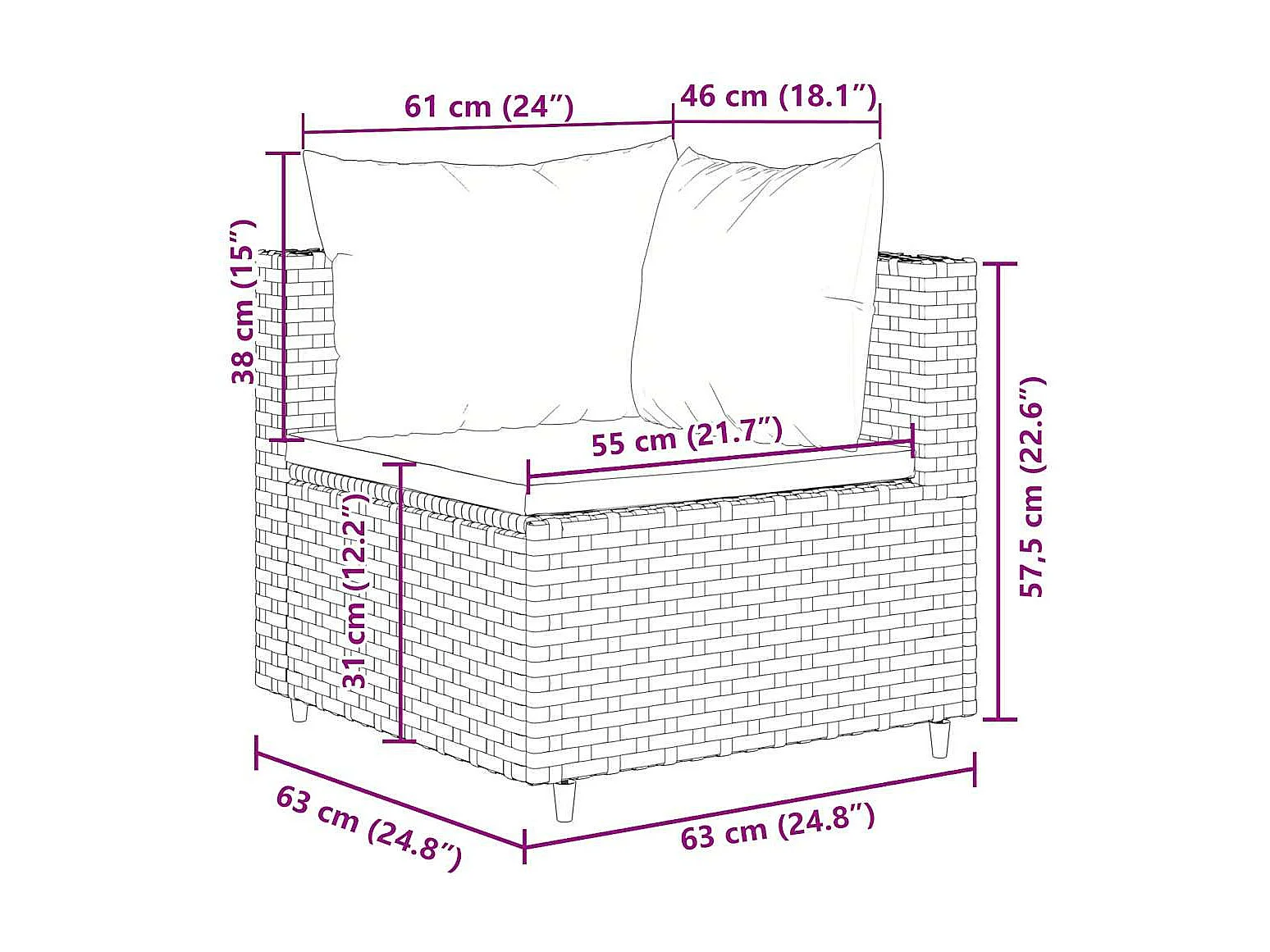 6 pcs conjunto lounge de jardim c/ almofadões vime PE preto