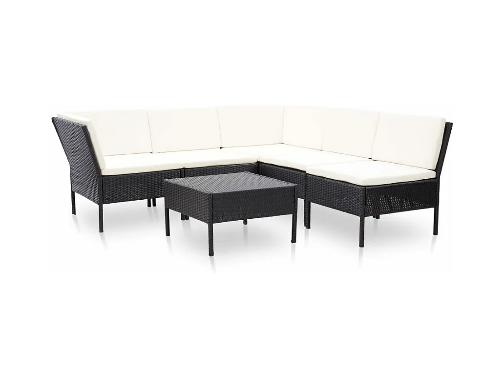 6 pcs conjunto lounge de jardim c/ almofadões vime PE preto PT26234