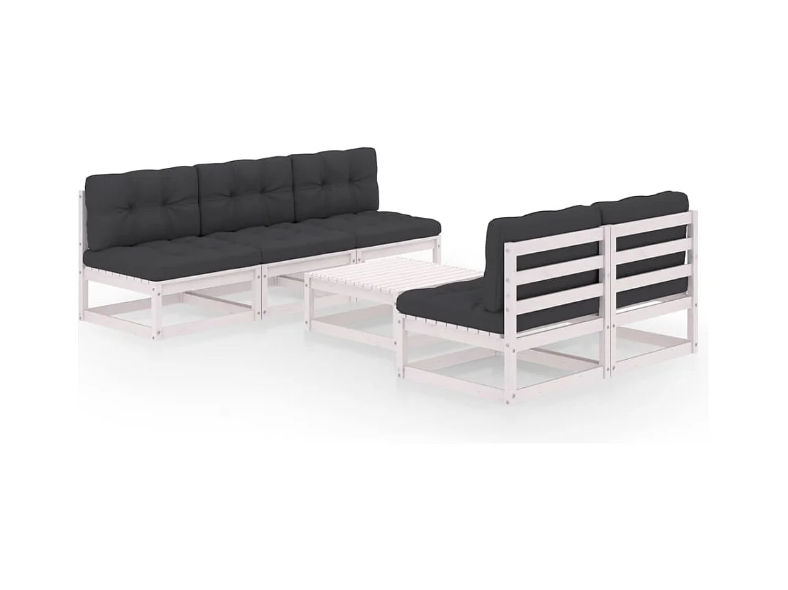 6 pcs conjunto lounge de jardim com almofadões pinho maciço PT83131