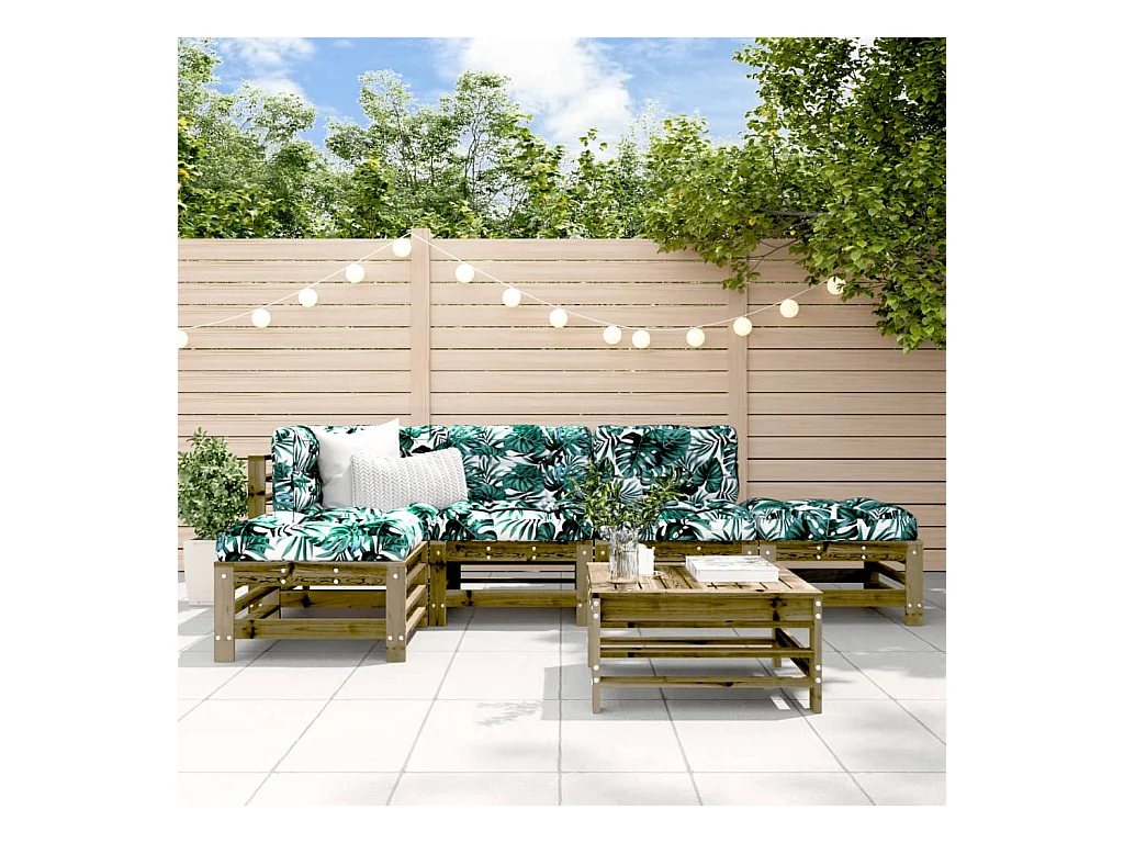 6 pcs conjunto lounge de jardim madeira de pinho impregnada