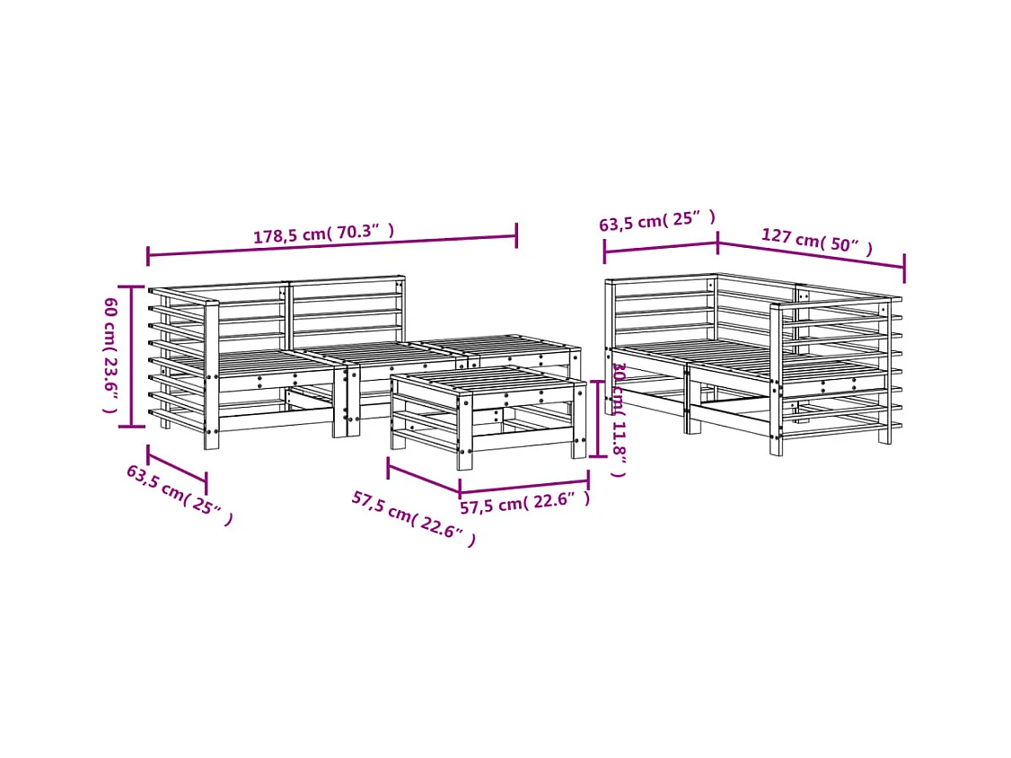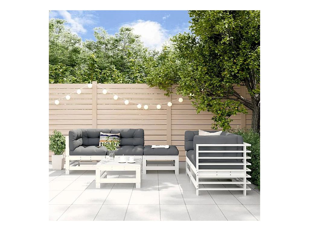 5 pcs conjunto lounge de jardim madeira de pinho maciça branco