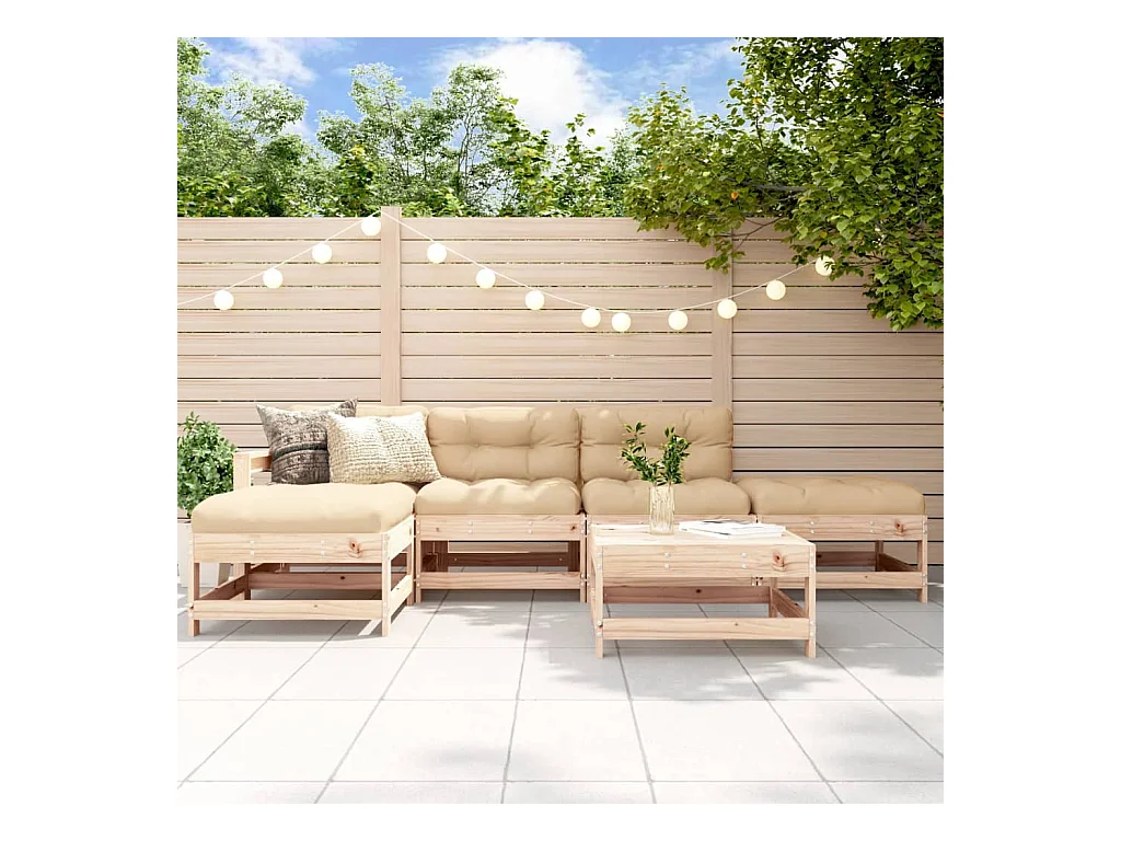 6 pcs conjunto lounge de jardim pinho maciço PT50289