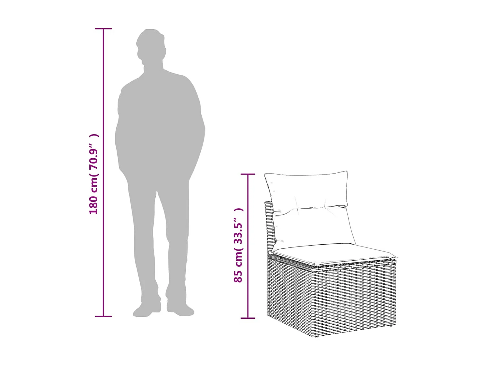 6 pcs conjunto sofás de jardim c/ almofadões vime PE preto