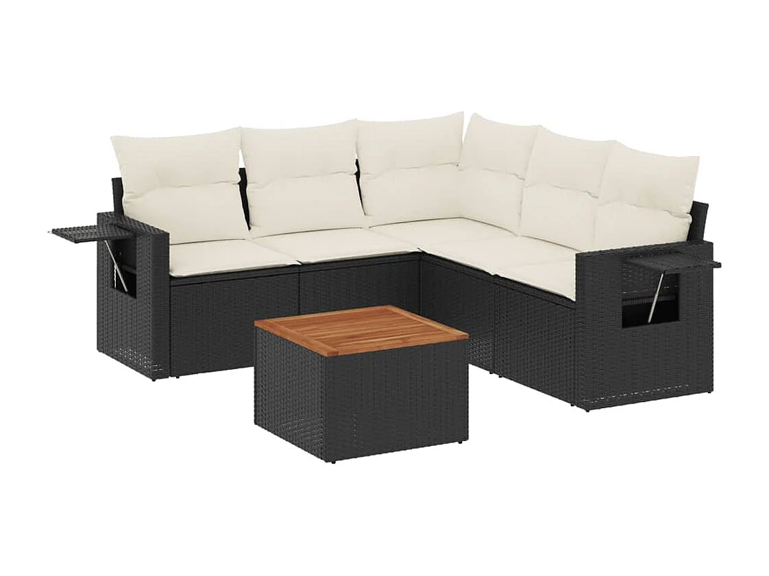 11 peças de móveis de jardim com almofadas de resina tecida preta
