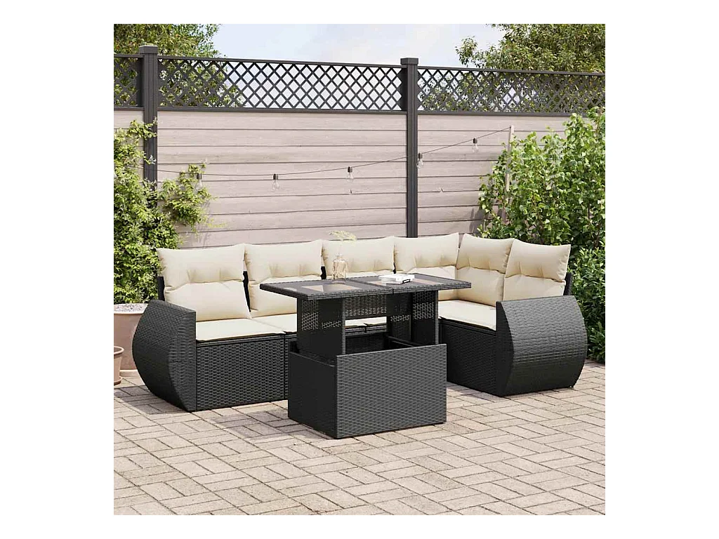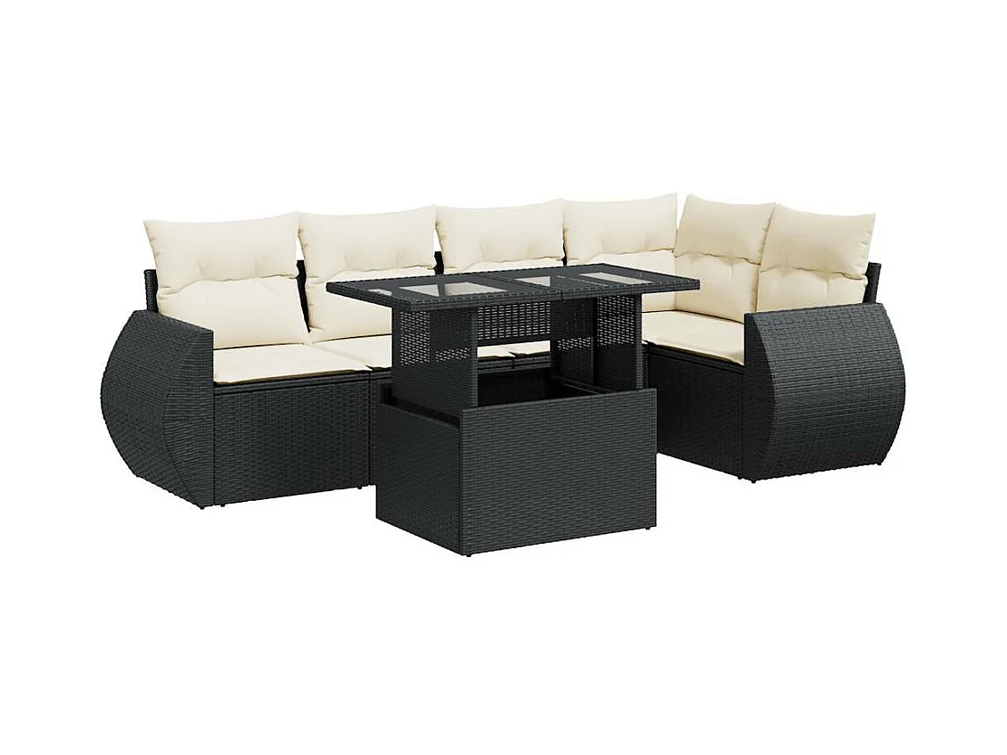 6 pcs conjunto sofás de jardim c/ almofadões vime PE preto