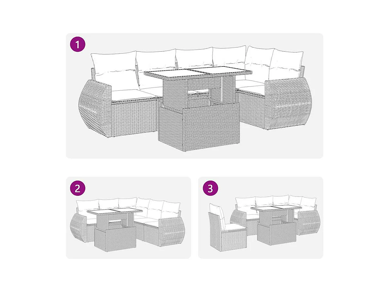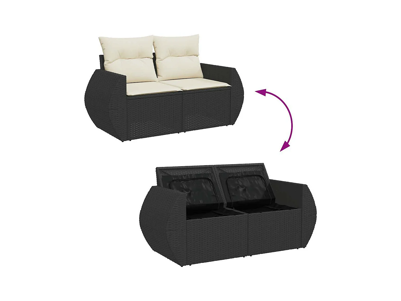 7 pcs conjunto sofás jardim c/ almofadões vime PE/acácia preto