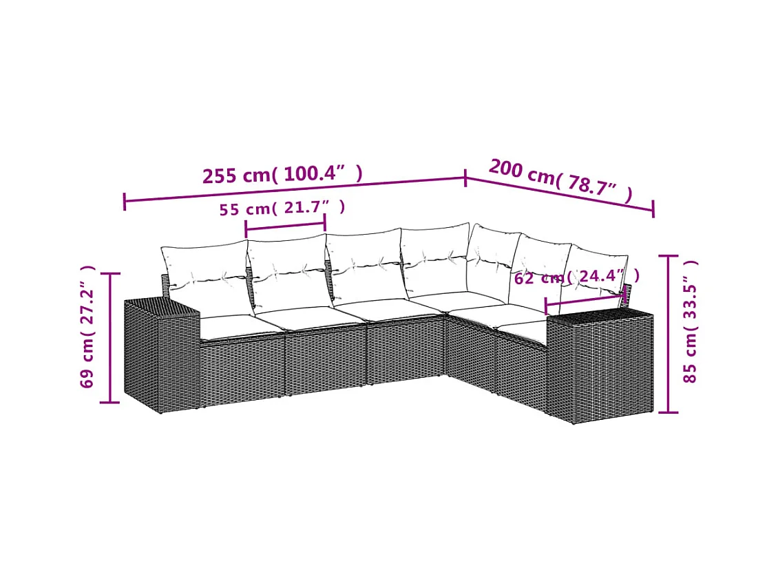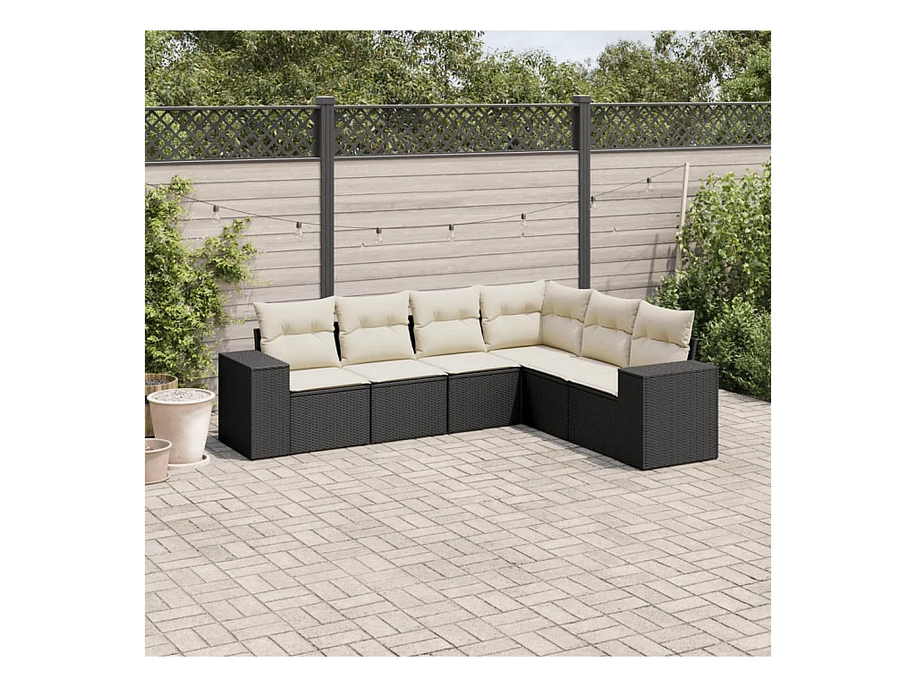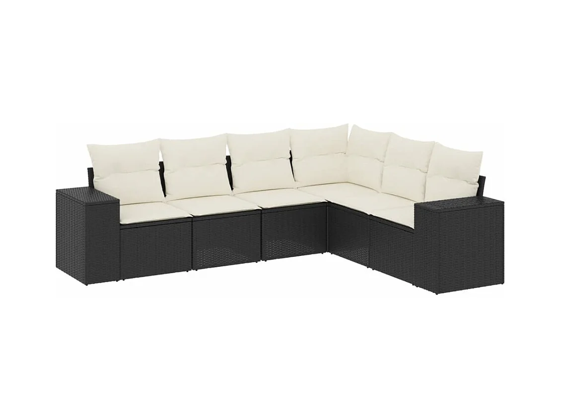 6 pcs conjunto sofás de jardim c/ almofadões vime PE preto PT307491
