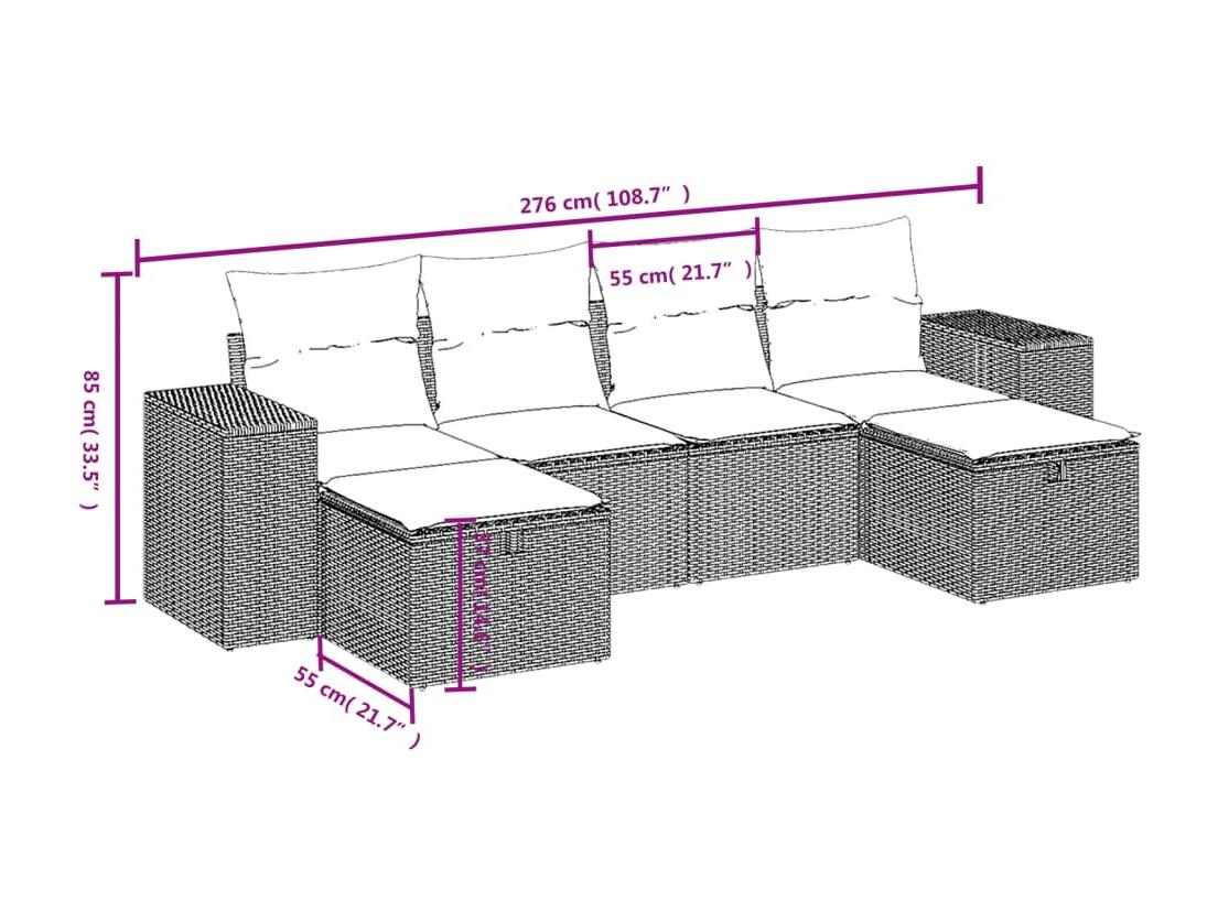 6 pcs conjunto sofás de jardim c/ almofadões vime PE preto PT106210