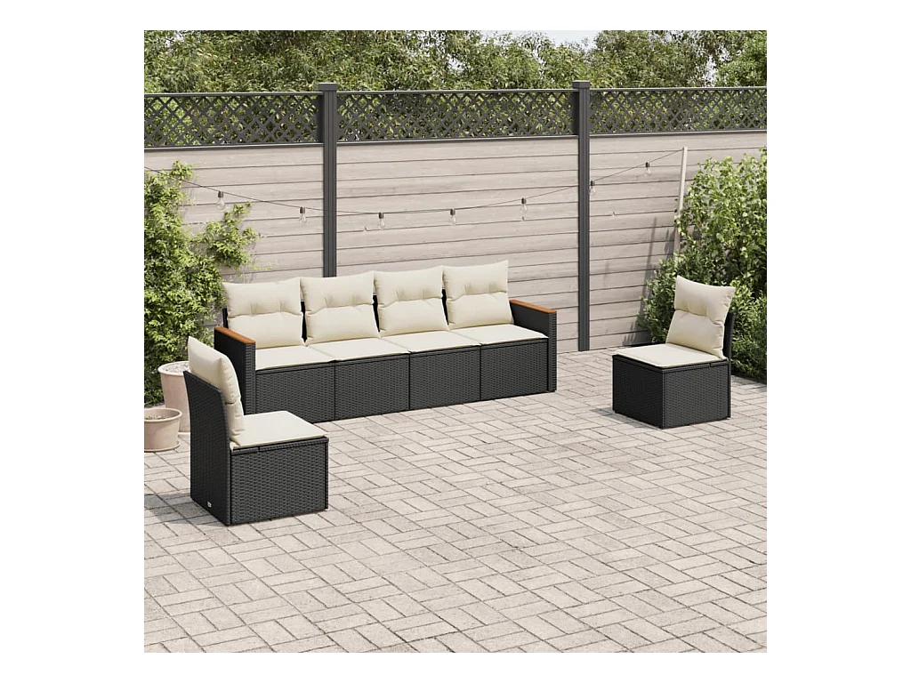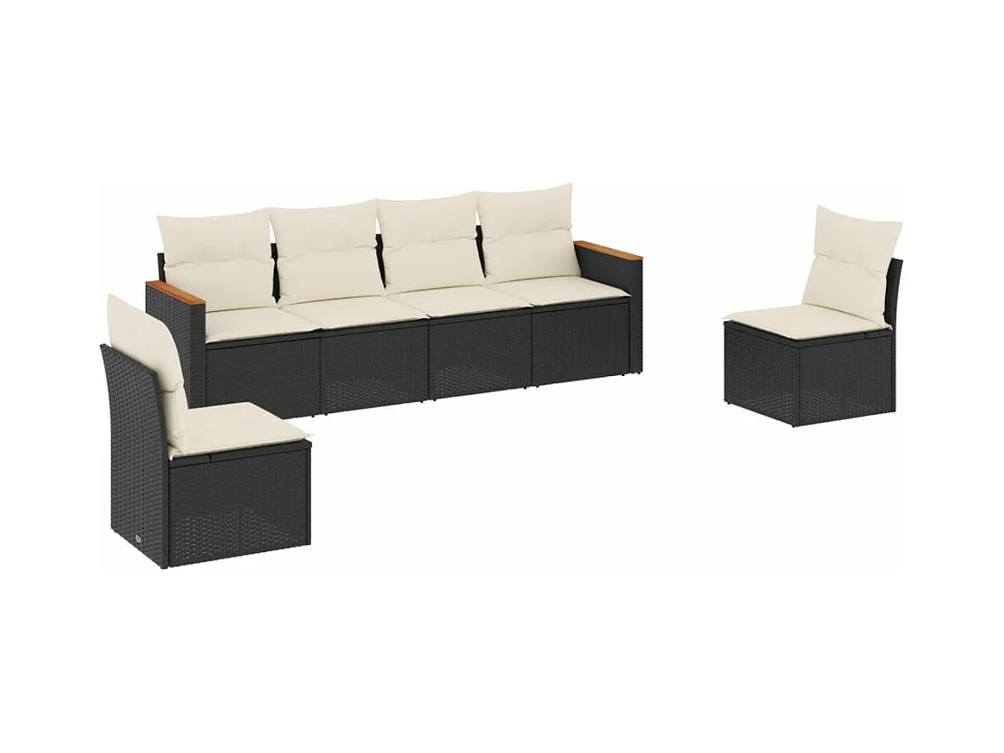 6 pcs conjunto sofás de jardim c/ almofadões vime PE preto PT328020