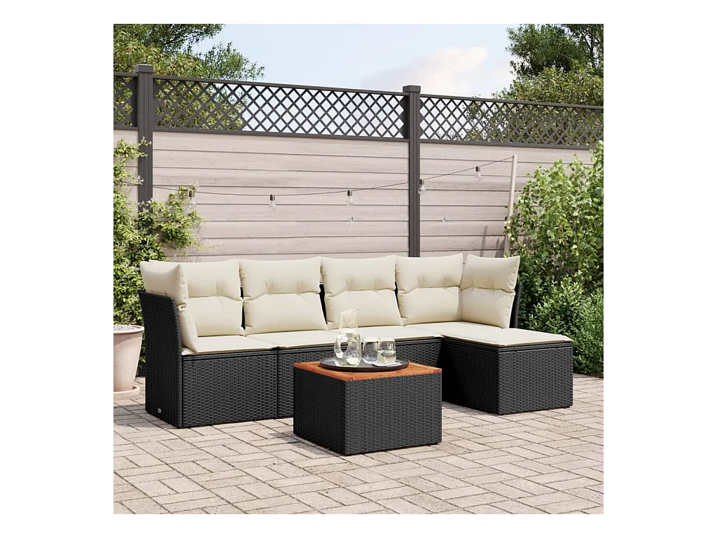 6 pcs conjunto sofás de jardim c/ almofadões vime PE preto PT262267
