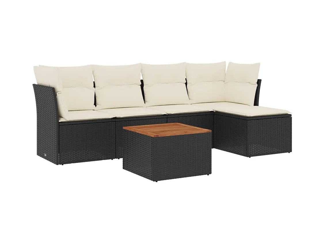 6 pcs conjunto sofás de jardim c/ almofadões vime PE preto PT364781