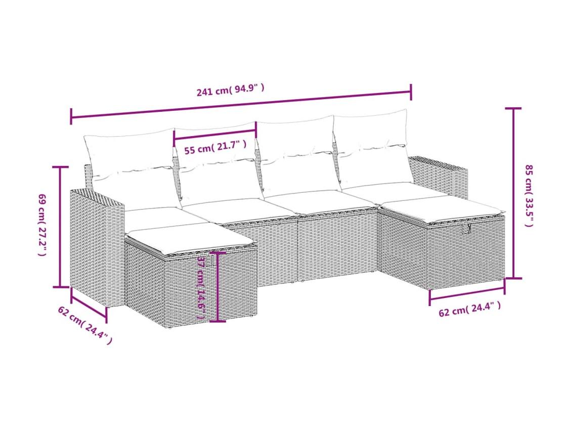 6 pcs conjunto sofás de jardim c/ almofadões vime PE preto PT999637