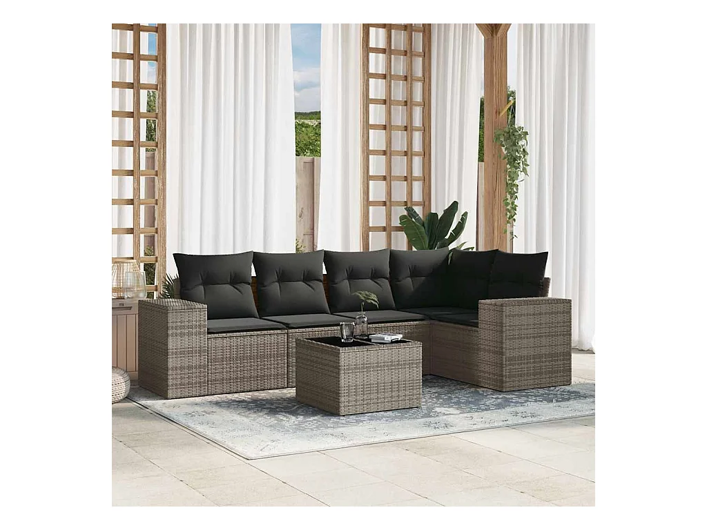 peças de móveis de jardim com almofadas de resina tecida cinza
