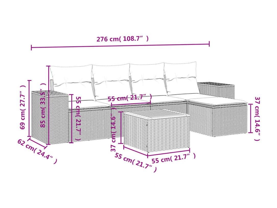 6 pcs conjunto de sofás p/ jardim com almofadões vime PE bege