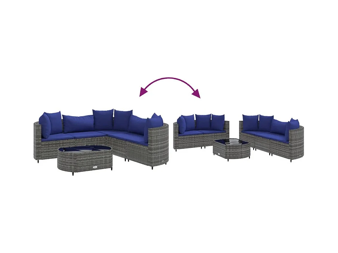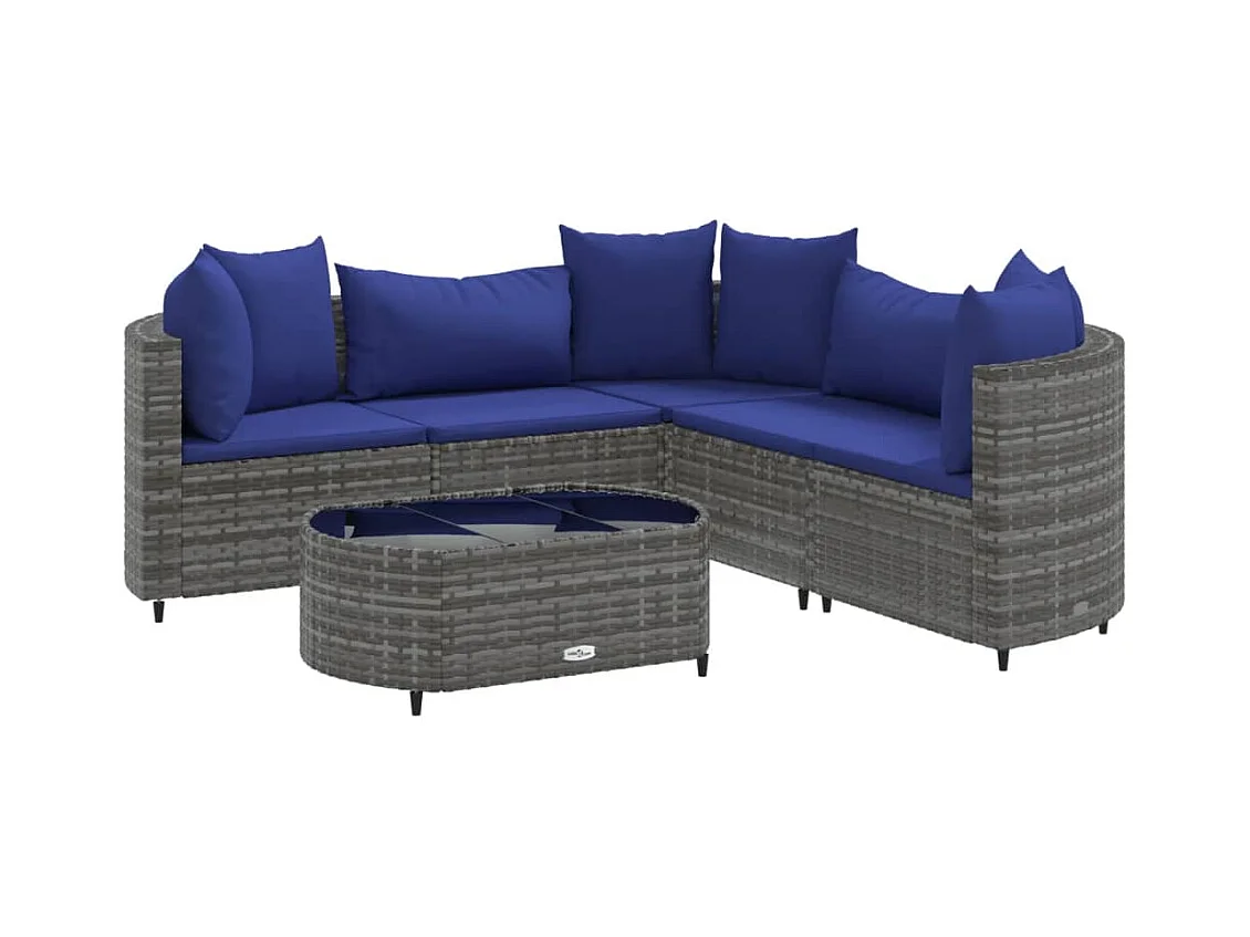 6 pcs conjunto sofás de jardim com almofadões vime cinzento
