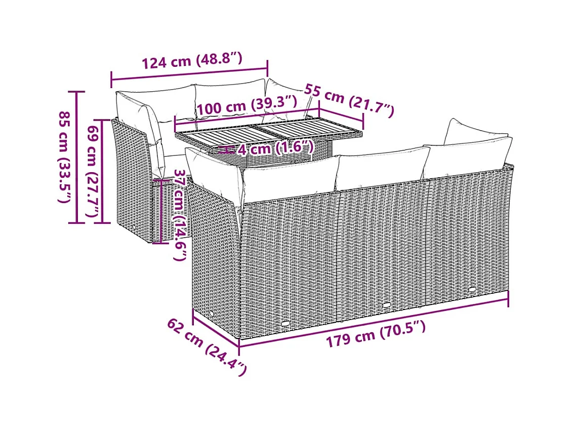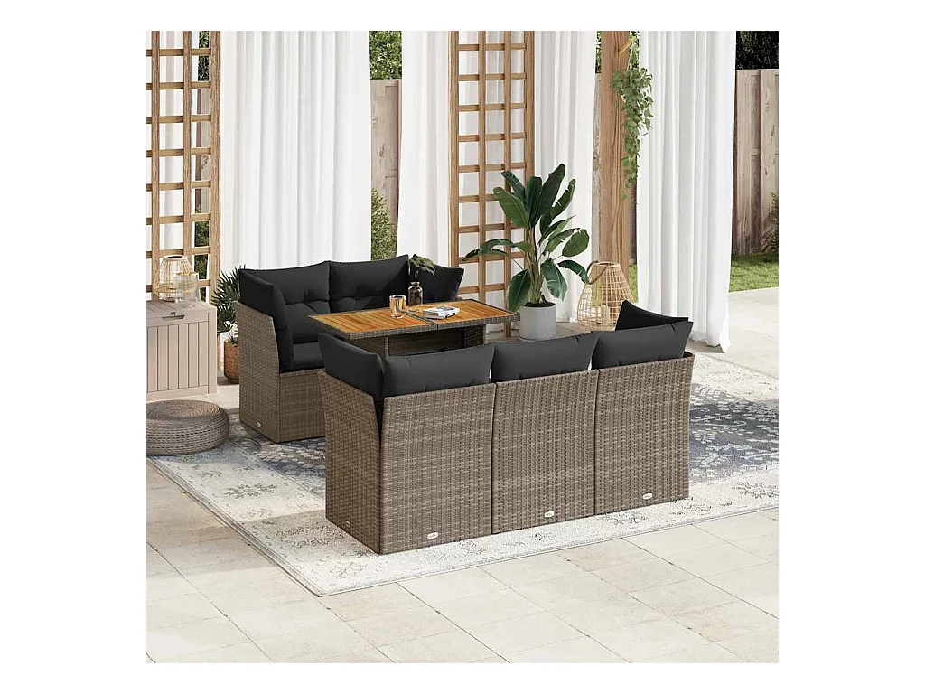 6 pcs conj. sofás jardim com almofadões vime PE cinzento-claro