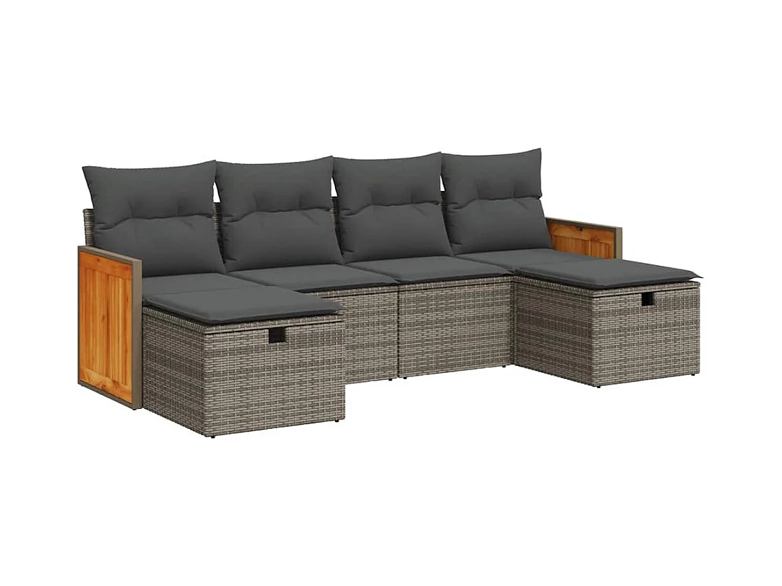 6 pcs conjunto sofás de jardim com almofadões vime cinzento