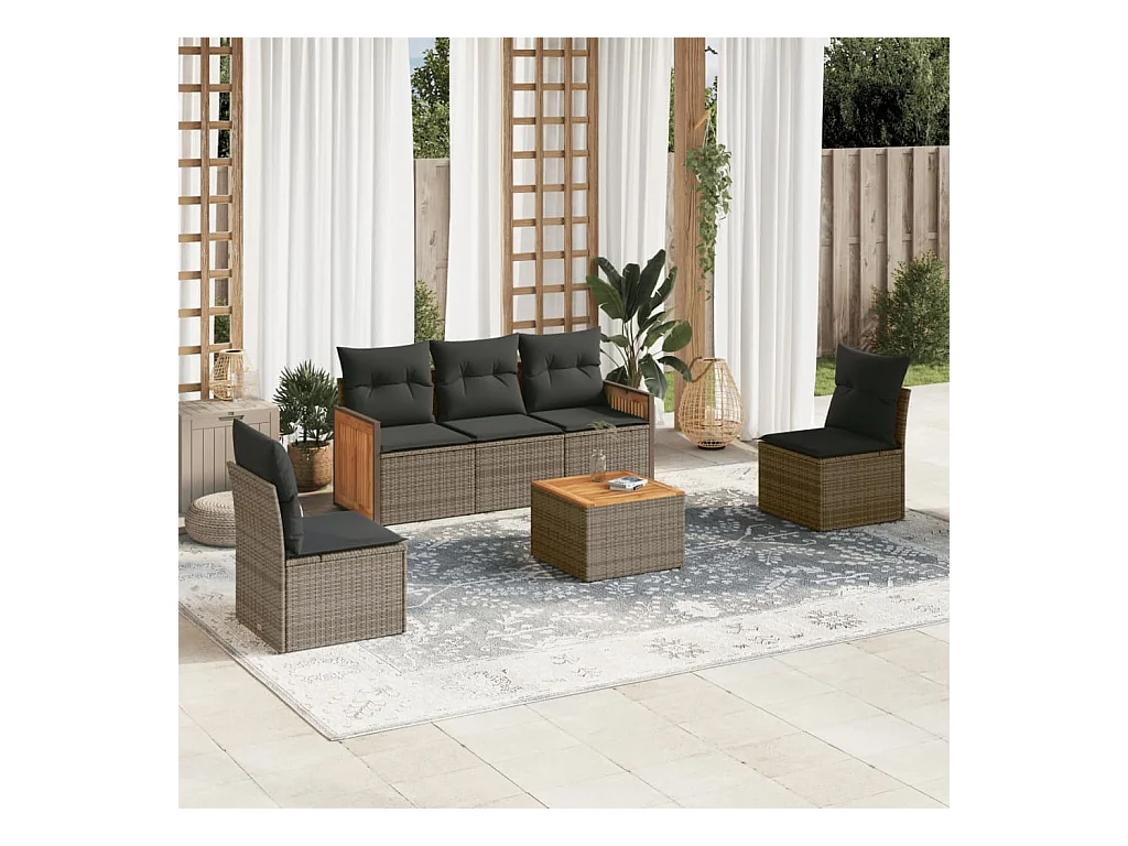 6 pcs conjunto sofás de jardim com almofadões vime cinzento PT967316