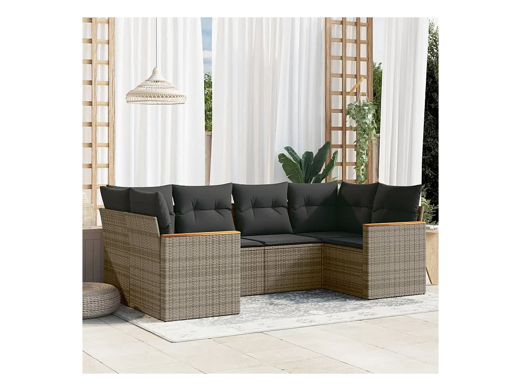6 pcs conjunto sofás de jardim com almofadões vime cinzento PT925833