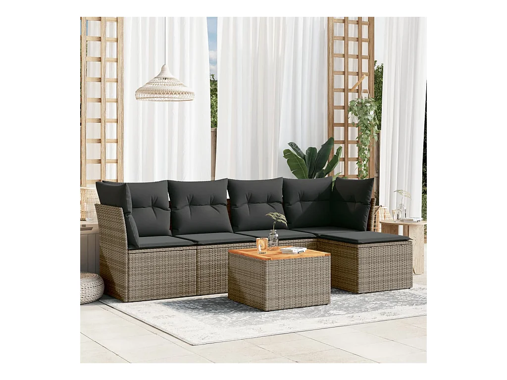 6 pcs conjunto sofás de jardim com almofadões vime cinzento PT870289