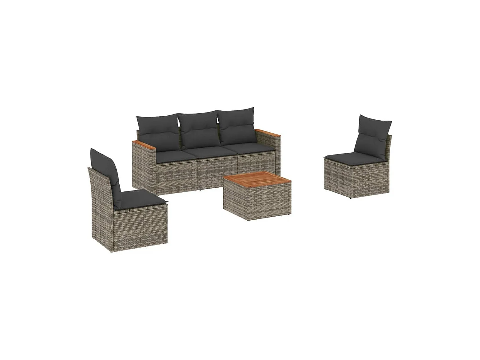 6 pcs conjunto sofás de jardim com almofadões vime cinzento PT712632